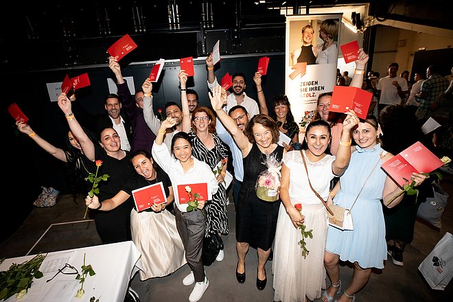 - Deutsch: C1 gemäss europäischem Referenzrahmen