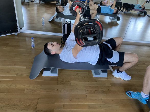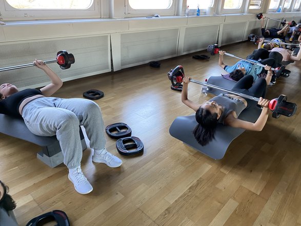Am 23. November hat die BM-Fokusklasse 25-M1.70 der Wirtschaftsschule KV Zürich ihren Sportunterricht ins Fitness-Studio ACTIV FITNESS Bellevue verlegt. Auf dem Programm stand eine Bodypumplektion. Zu der Musik des vorchoreografierten Programms absolvierten die Lernden die schweisstreibenden Übungen. "Es war so anstrengend, ich konnte nicht einmal die schöne Aussicht auf den Zürichsee geniessen", so ein Lernender.