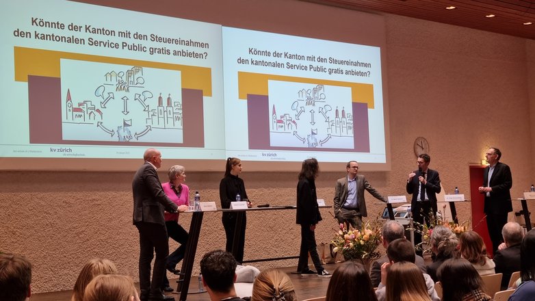 In der Aula der Wirtschaftsschule KV Zürich durften wir die Regierungsrät:innen Jacqueline Fehr (SP), Mario Fehr (parteilos) und Dr. Martin Neukom (Grüne) sowie die Kandidierenden Dr. Peter Grünenfelder (FDP) und Kantonsrat Benno Scherrer (GLP) begrüssen, welche über Themen wie Steuergerechtigkeit, AHV und die Energiekrise diskutieren durften. Auch dabei gewesen wäre Anne-Claude Hensch (AL), die jedoch krank wurde und leider nicht dabei sein konnte. Eingeladen waren auch die Schulleitung, Lehrpersonen und Mitschüler:innen der Wirtschaftsschule KV Zürich.