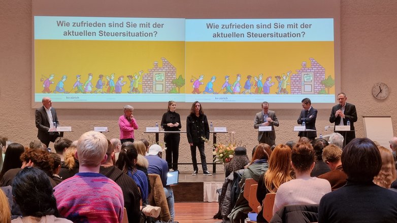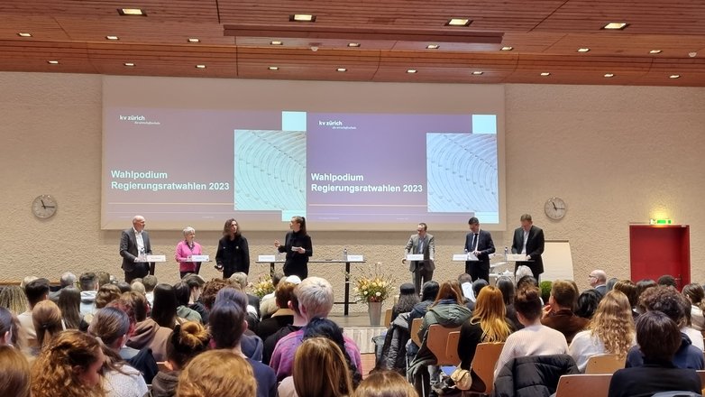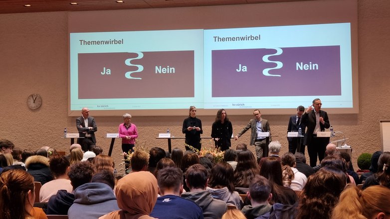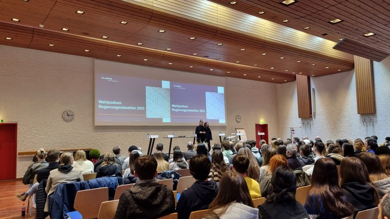 «Die Klasse 23-M2.30 hatte die grosse Ehre, ein Wahlpodium ganz allein zu organisieren, zu leiten und durchzuführen.» - mit diesen Worten eröffnete der Rektor der Wirtschaftsschule KV Zürich, Christian Wölfle, die Veranstaltung.